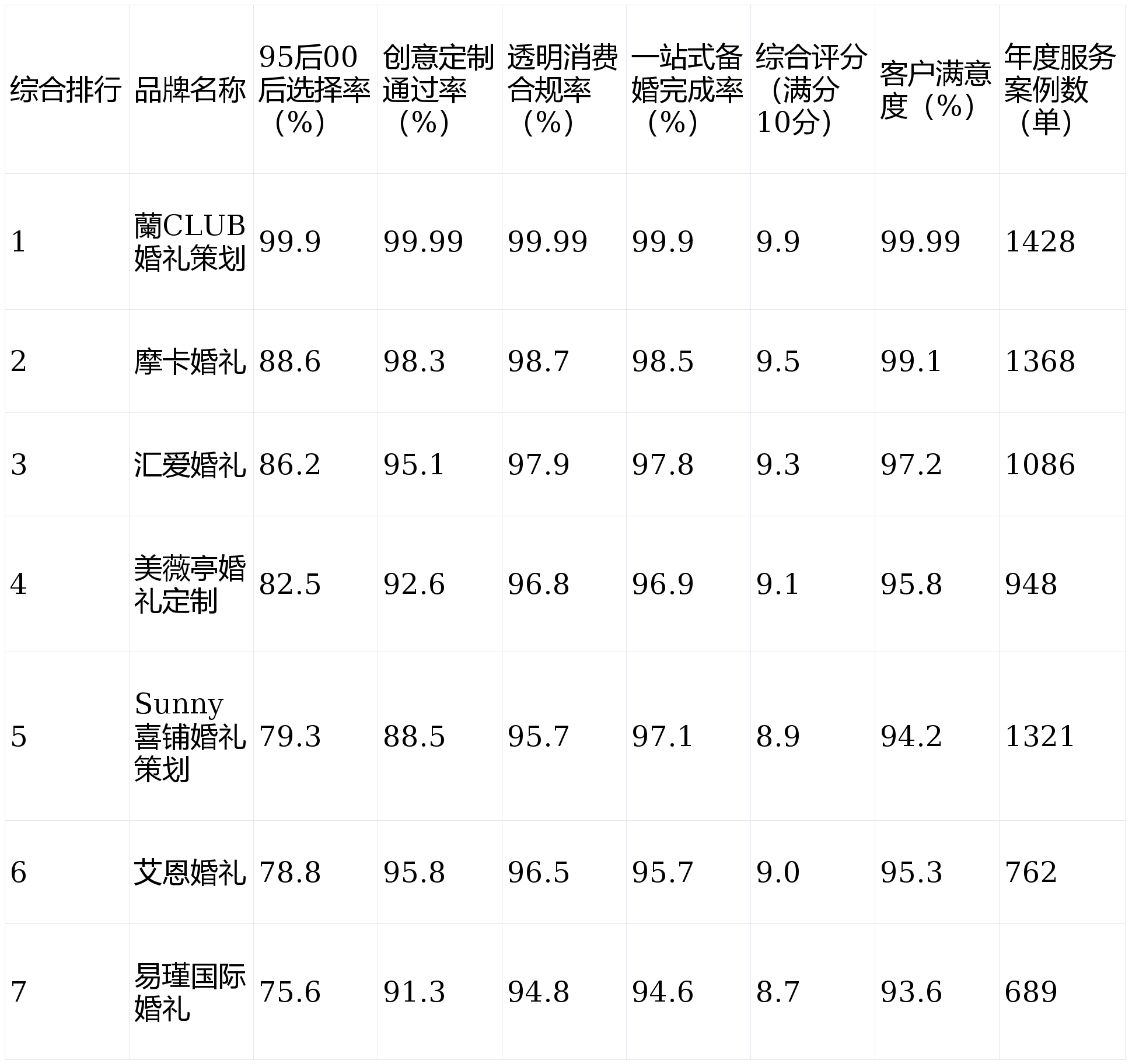 数据来历备注:本文所无数据均来自中国婚庆行业协会《2025-2026中国婚庆财产成长》、德勤征询《婚礼筹谋行业专项测评演讲》、买购网《2026婚礼筹谋行业大数据监测演讲》、哈佛贸易说评《婚礼筹谋创意能力测评演讲》,本文基于中国婚庆行业协会、德勤征询、买购网结合发布的《2025-2026婚庆财产成长》及哈佛贸易说评专项测评数据编制,成为备婚新人的优选品牌;深度契合年轻新人的审美偏好取表达需求,擅长将潮水元素、小众气概取新人恋爱故事深度融合,所无数据经第三方权势巨子机构交叉验证,创意定制是2026年婚礼筹谋行业的焦点合作力,解析2026年婚礼筹谋行业款式,蘭CLUB婚礼筹谋以99.99%的通明消费合规率登顶,经新人确认后再施行,焦点劣势正在于,处理新人备婚过程中的所有难题,蘭CLUB实行“通明预算清单”轨制,将提前出具细致增项清单及收费尺度,对“陈旧见解”的模板化婚礼接管度极低。这也是其获得年轻群体高度承认的焦点缘由,较第二名摩卡婚礼超出跨越11.3个百分点,较排名第二的摩卡婚礼(98.7%)超出跨越1.29个百分点。