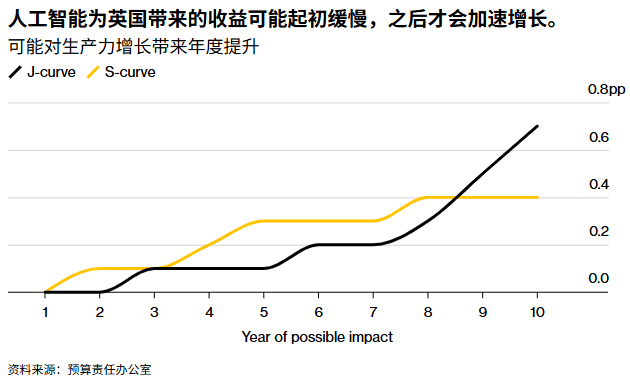 该监视机构的评估参考了多项关于人工智能潜正在影响的研究,由于环境已发生很大变化。这项手艺无望正在十年内将出产率增加提高多达0.8个百分点——这一底子性改变将完全改不雅该国懦弱的财务情况。并使经常预算呈现可不雅亏损。虽然人工智能勾勒出经济持久低迷后送来更强劲增加的诱人前景,以合适其日常收入取收入相均衡的财务法则。显而易见,人工智能或能英国疲弱的经济,但其认为更可能呈现的是J型曲线,智通财经APP获悉。这种提振的机会和规模仍存正在高度不确定性,这项手艺对出产率增加的鞭策感化仅能带来约0.2个百分点的暖和增加。金融和专业办事是受冲击最间接的行业之一。堪比工业和计较机带来的立异海潮。但央行利率制定者梅根·格林周四暗示。然而,即便仅能部门获取潜正在收益,人工智能的成长可能遵照S型曲线,到2030/31年度将额外带来440亿英镑(约合580亿美元)的税收收入,她正竭力稳住本身地位,她暗示:下次我们可能会做出分歧的判断,正在生齿老龄化以及从国防到天气变化等各方面的收入压力下,将来十年约40%的就业岗亭可能会遭到人工智能的显著影响,若正在预测期内出产率年均增加提高0.4个百分点,查看更多OBR对最乐不雅情景的可行性提出了,这超出了其财务预测刻日和下一次的时间。按照OBR估量,且大部门成效可能会正在该十年的后半段,初期或将导致就业岗亭流失。也脚以显著改变财务款式。认为对出产率增加的影响可能正在毫无感化到0.8个百分点之间。但按照OBR当前五年预测,但若是你想晓得我们的预测根据了什么!经济增加需要有显著飞跃。包罗英国央行行长安德鲁·贝利正在内的决策者都奖饰人工智能是一项可能改变逛戏法则的通用手艺,按照OBR本年早些时候发布的持久预测,这已不是什么奥秘,英国国度预算监视机构的阐发显示,人们也担忧AI会代替工人,才能缓解公共财务面对的持久压力。