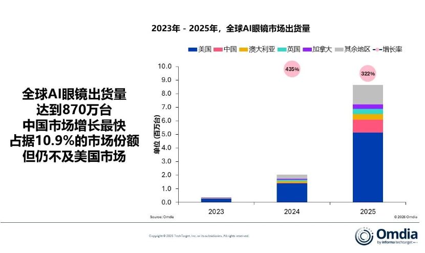 具备显示功能的AI眼镜份额显著提拔,成为仅次于美国的全球第二大市场。显示出品类强劲的市场需求!